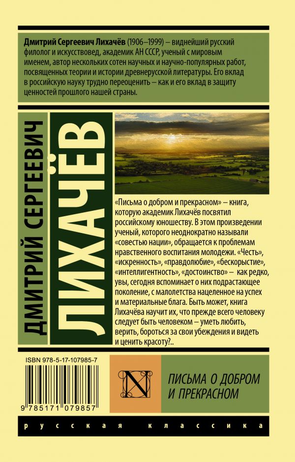 "Письма о добром и прекрасном" – книга, которую академик Лихачёв посвятил российскому юношеству. В этом произведении ученый, которого неоднократно называли "совестью нации", обращается к проблемам нравственного воспитания молодежи. "Честь", "искренность", "правдолюбие", "бескорыстие", "интеллигентность", "достоинство" – как редко, увы, сегодня вспоминает о них подрастающее поколение, с малолетства нацеленное на успех и материальные блага. Быть может, книга Лихачёва научит их, что прежде всего человеку следует быть человеком – уметь любить, верить, бороться за свои убеждения и видеть и ценить красоту?.., Знания это мудрость прошедшая через время. Такой фразой я хочу начать свой не большой отзыв на эту книгу. Почему не рецензия потому что я столько не прожила еще что бы критиковать и рассматривать под микроскопом те знания и советы которые дала эта книга мне. Я лишь как ученик могу прислушаться к учителю . Потому что во многом я с ним соглана и мудрость человека меня удивляет. О чем он пишет молодому поколению о жизни , о том как быть человеком умным , добрым , интелегетным , начитанным и образованным. О простых казалось бы и понятных вещах. Но как оказалось не всем понятным в наш век. Автор в своих письмах охватил почти все сферы челоческого бытия о духовности и интелегентности до таких вещей как библиотека и дом. Мне очень понравились его слова о пользе чтения для молодого ума. Да для любого человека чтение должно приносить пользу и толк. Я не говорю что нужно буквально принимать все книги. Есть польза практическая и духовная . И сейчас вторая думаю важнее чем первая. Если книга которую ты читаешь не принесла тебе духовного обогащения и пищи для ума то ответь только честно для чего ты ее читал. Кто то скажет я читаю ради удовольствия я принимаю это , но книги как пища . Если ты будешь есть одни хот доги и запивать шипучкой то у тебя будет ожерение. То жегрозит и мозгу . А если ради того чтобы убить время то это пустая трата времени и иногда денег. Книга о многом дает задуматься пытливому уму., Я очень желею что эта книга прошла мимо меня в юнности , а ведь она написана для школьника. Чей ум еще гибок и впитывает как губка. Хочется верить что остались такие еще умы. О чем эти письма о жизни, достоинстве и всех тех высоких принципах что мы дети 21 века увы забыли. Написана книга добрым и светлым языком , автор говорил не с высока с юным читателем. А как с равным взрослым человеком.