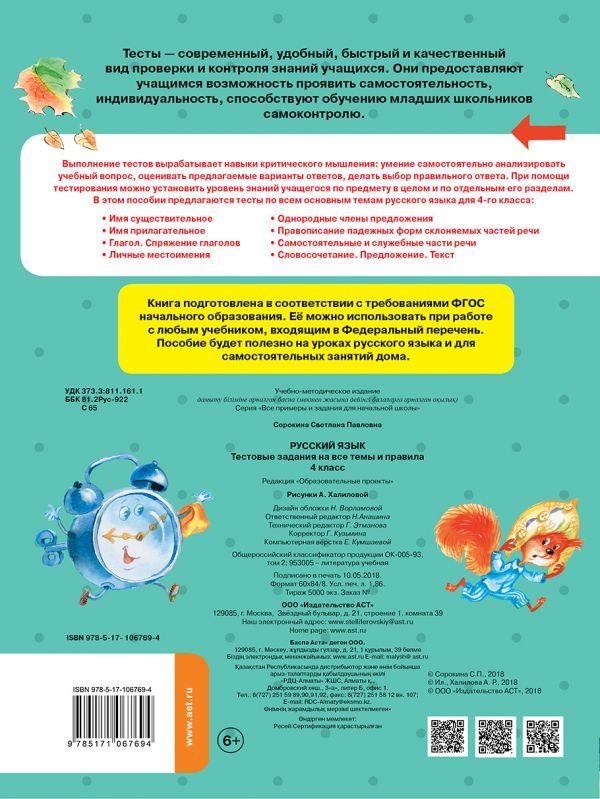 Русский язык. Тестовые задания на все темы и правила. 4 класс