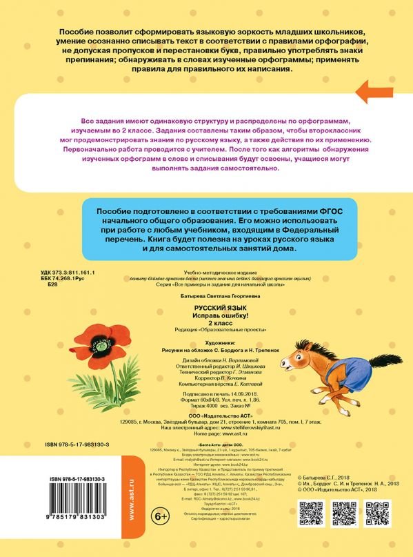 Русский язык. Исправь ошибку. 2 класс