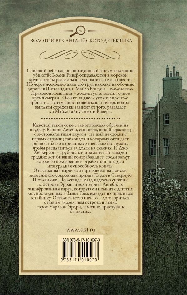 Сбивший ребенка, но оправданный в неумышленном убийстве Колин Ривер отправляется в морской круиз, чтобы развеяться и успокоить голос совести. Но через несколько дней его труп находят на обочине дороги в Шотландии, и Майлз Бридон — следователь страховой компании — должен установить точное время смерти. Однако за двое суток тело успело пропасть, а затем снова появиться, и теперь вопрос выплаты страховки зависит от того, разгадает ли Майлз тайну смерти Ривера. Кажется, такой союз с самого начала обречен на неудачу. Вернон Летеби, сын пэра, яркий красавец, с экстравагантным вкусом, чье имя не сходит с первых страниц таблоидов и которому отец дает ровно столько карманных денег, сколько нужно, чтобы расплатиться за долги на скачках. И Джо Хендерсон — грубоватый и замкнутый канадец средних лет, бывший контрабандист, среди заслуг которого подозрение в ограблении поезда и незаурядная способность копать. Эта странная парочка отправляется на поиски знаменитого сокровища принца Чарли в Северную Шотландию. По легенде, клад надежно спрятан на острове Эрран, и если верить Летеби, то зашифрованная карта, которую он помнит с детских лет, проведенных в Замке Грёз, выведет их прямиком к тайнику. Осталось всего ничего — договориться с новым владельцем острова и замка сэром Чарлзом Эрдри, и можно приступать к поискам., С удовольствием читаю серию и романы Нокса. Романы не простые, их не прочитаешь за один вечер. Последний прочитанный "Фальшивые намерения" остроумный, с запутанная интригой. К сожалению, переводчик допустил такие ошибки в переводе, которые несколько подпортили впечатление. Так, главный герой, сын герцога почему-то стал его "преподобием". Как известно, такое звание относится к представителям церкви. Клавдий никогда не был отцом Гамлета, это его дядя. Один персонаж, учитель "раздухарился" (?). Майлз и его жена разговаривают на языке, который явно не соответствует их образованию., С удовольствием читаю серию и романы Нокса. Романы не простые, их не прочитаешь за один вечер. Последний проч�...